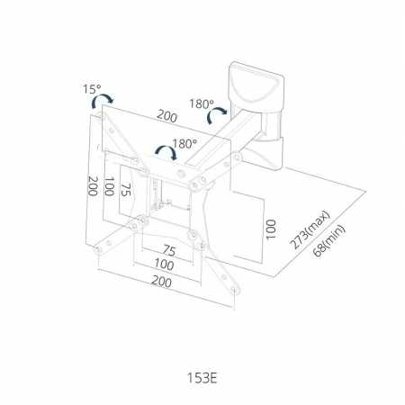 זרוע 3 תנועות למסכים דגם 153E